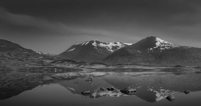 The mountain reflection in the still waters of Lochan na h-Achlaise.