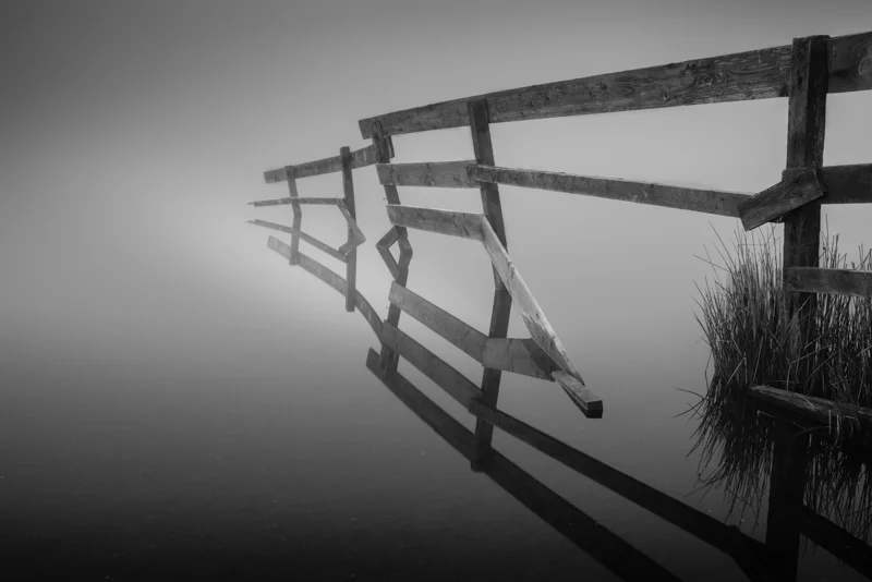 Another photograph from last weekends visit to Knapps Loch. This time a crumbling fence reflected in the still water.