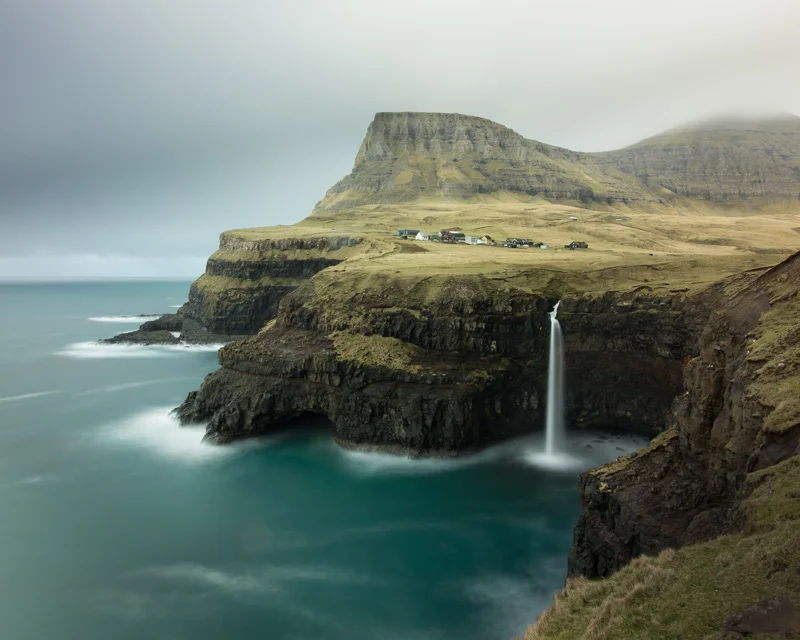 This photograph is my take on the frequently shot waterfall at Gásadalur which drops several hundred feet into the ocean.